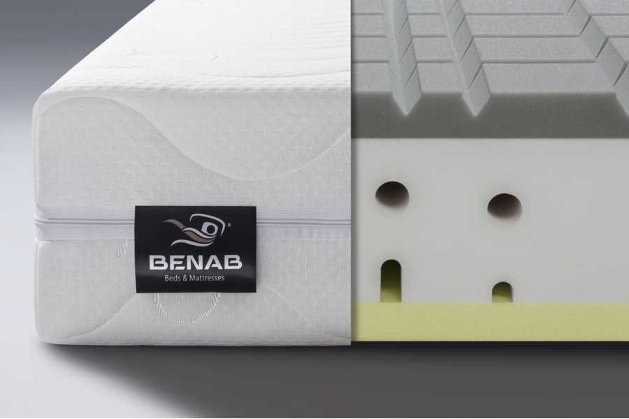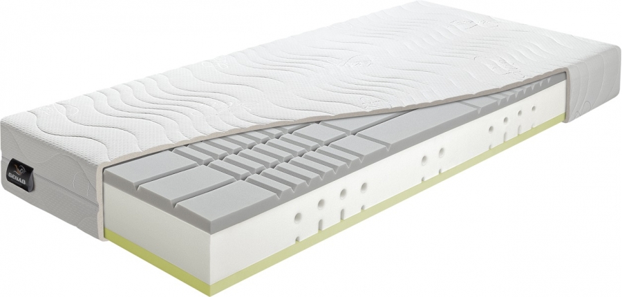 Robustný, až 24 cm vysoký sendvičový matrac s vrstvou VISCO elastickej pamäťovej peny a antidekubitným profilom z komfortnej peny.
